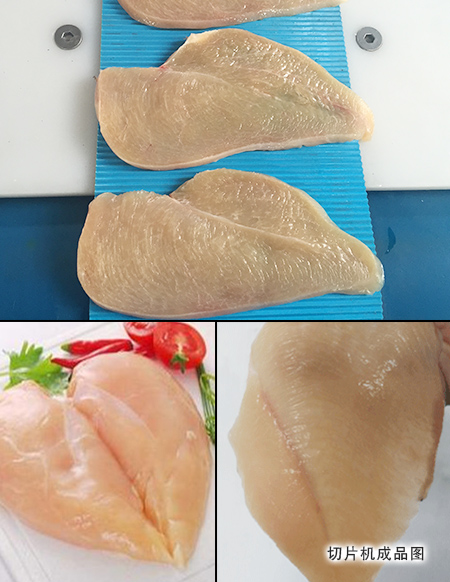通過更換刀架即可調整切割產品的厚度;通過更換刀具實現雞胸肉蝴蝶心的切割加工;